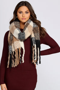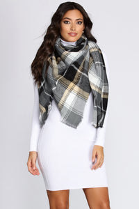 Layer it up babe! We are obsessed with the neutral tones of this scarf, because it will pair well with all outfits. Designed with a window pane plaid pattern, and open ends with a short fray. Scarf is composed of a tight knit lightweight material.Style Number/Barcode: 07305-0040