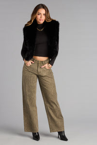 These leopard-spot flares bring that fierce, effortless confidence that works whether you’re dressing up or keeping it casual. The structured rise meets a flowy leg for a look that always lands—no overthinking required.