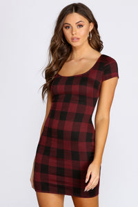 Clad In Plaid Scoop Neck Mini Dress