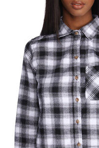 Play for keeps in this cute, and casual top! The button up shirt has a flat collar paired with long sleeves that feature button cuffs and a basic chest pocket. The garment is composed of a woven, plaid print fabric that offers a relaxed fit.