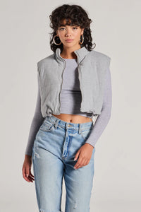 Comfy and cozy will be your vibe in this soft knit cropped puffer vest featuring a sleeveless collared neckline, a complete zip front, and adjustable drawcords at the hem for a chic cinched look. Layer over a long sleeve top with jeans and sneakers!