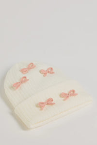 Cozy Up Bow Detail Ribbed Knit Beanie