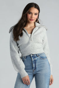 Give Me Cozy Half-Zip Fuzzy Knit Crop Sweater