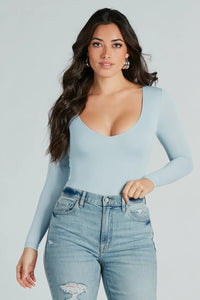 Smooth Silhouette V-Neck Long Sleeve Bodysuit