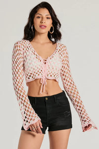 With this crochet sweater to layer over your outfit or swimsuit, your looks will always be on point! The flare cuffs add a touch of femininity, while the open front with tie closure allows for a customizable fit. The cropped hem and checker pattern make this sweater a stylish and versatile addition to your wardrobe. Complete the look with sunnies.