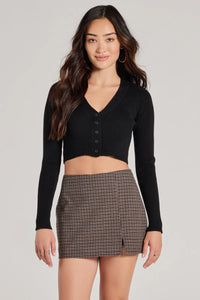 A darling crop cardigan features fitted long sleeves, a flattering V-neckline, and button-up front closures for multiple styling options. Perfect for styling with your favorite bottoms.