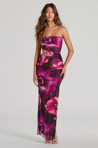 Stunning Favorite Strapless Cutout Floral Maxi Dress Stunning Favorite Strapless Cutout Floral Maxi DressCreate a stunning aurora in this floral maxi dress for summer cocktail hours! The strapless neckline and side cutout provide a flattering silhouette, while the form-hugging fit accentuates your curves, and the high side slit offers a show of leg. Complete the look in strappy stiletto heels. Fit & Features - Floral print, mesh fabric lined with stretchy knit