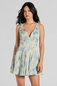 Constant Sensation V-Neck Corset Satin Skater Dress Constant Sensation V-Neck Corset Satin Skater DressAlways be a constant sensation when you step out in this satin skater dress at parties or soirees! With a flirty V-neckline, comfortable shoulder straps, and a flattering corset-seam bodice, this dress has a playful skater silhouette and a short-length hem. The abstract print adds a touch of fun to the satin fabric. Complete the look with bracelets and a clutch! Fit & Features - Abstract print, satin fabric, woven lining, no stretch