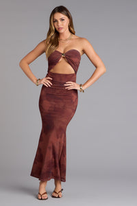 Leave An Impression Twist Cutout Knit Midi Dress Leave An Impression Twist Cutout Knit Midi DressLeaving an impression will be easy with this sleeveless knit midi dress! Perfect for vacation or a weekend spent at the beach, this dress features a flattering scoop neckline, spaghetti straps, a head-turning twist cutout back design, a bodycon fit, and a sultry side slit along the midi-length hem. Complete the look in strappy espadrille wedges. Fit & Features - Knit fabric, moderate stretch