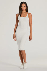 Done In One Ribbed Knit Bodycon Midi Dress Done In One Ribbed Knit Bodycon Midi DressBe ready in a flash with this done-in-one bodycon midi dress perfect for styling up or down! Made with stretchy ribbed knit fabric, it's also soft and comfortable to wear all day. It features a flattering scoop neckline and tank shoulder straps for a comfortable and stylish fit. With a bodycon silhouette and midi-length hem, this dress will hug your curves! Complete the look in a crop denim jacket and sandals. Fit & Features - Ribbed knit fabric, sewn-in knit lining, moderate stretch