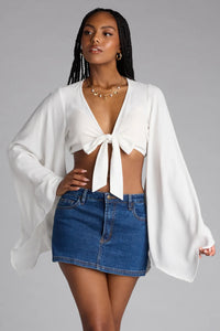 Meet For Golden Hour Tie-Front Top Meet For Golden Hour Tie-Front TopThe top that turns sunsets into photo shoots. Designed with long flowy sleeves and a flirty tie-front, it's made for vacays, day dates, and spontaneous weekend plans. Fit & Features - Airy linen-blend woven fabric