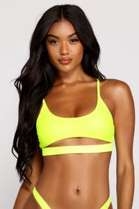 Let this bikini top instantly activate your vacay mode this season! The bikini top features a sleeveless scoop neckline, adjustable spaghetti straps, and an underbust cutout. Complete look with the matching bikini bottoms and thong sandals.