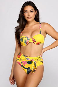 Get spring on these cute bikini bottoms! The bottoms feature a high-rise waist, a floral print, a cute tie-waist belt, and a cheeky bottom. Complete the look with the matching bikini top and sandals.