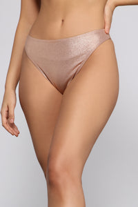 Glisten and glow as you lounge poolside in these gorgeous swim bottoms! They feature a high rise waist, a semi-cheeky fit, and a shimmery fabric. Complete your look with the matching swim top and a chic flowy kimono.