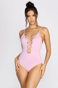 Don't underestimate a simple swimsuit babe! Dress it up with a gold chain belt and some stunner shades! Don't forge to pick up your matching swim top!
