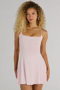 An attention-worthy A-line mini dress that'll have everyone adoring your cuteness! This square neck dress accentuates your curves while the lace-up back adds a touch of playfulness. The A-line silhouette and mini-length hem are perfect for any occasion. Complete the look in wedges and a clutch!