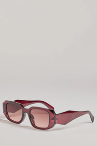 Take your summer looks to a new level with these trendy shades! The sunglasses feature an angled rectangular-shaped design with a plastic frame, asymmetric-style arms, built-in nose pads, and tinted lenses. Pair with chunky hoop earrings.